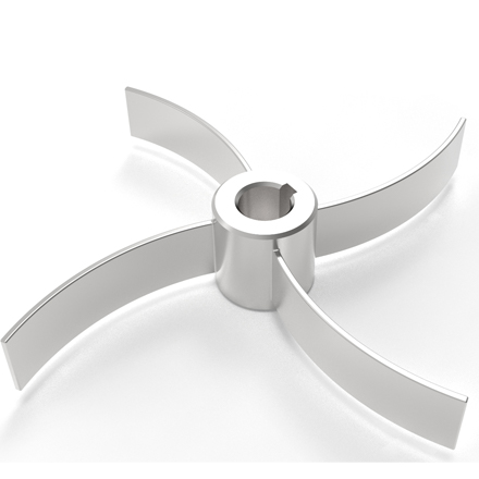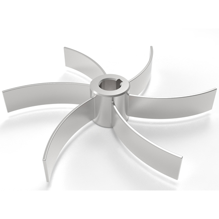 流動(dòng)狀態(tài):彎葉開啟渦輪槳為徑流型槳葉。當(dāng)有擋板時(shí)可自槳葉為界形成上下兩個(gè)循環(huán)流。